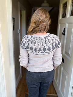 Designed for adult sizes XS to 5XL, this sweater is worked seamlessly from the top down, featuring stunning geometric Christmas tree detail across the yoke that looks far more intricate than it really is. The overlay mosaic crochet creates a beautiful texture and visual interest — and the best part? It’s easier than it looks!