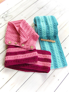 Patterns for a button cowl, infinity scarf and regular scarf. Great unisex designs with lots of texture. Crochet each or the projects in stripes or a solid color.