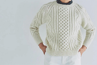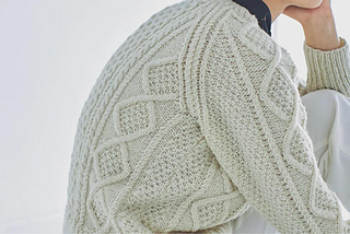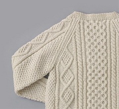 全体に広がる模様編みが美しいアラン模様のセーター。