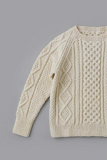 しっかりとしたコシ感で膨らみがあり、模様編みがはっきりと浮かび上がる「チェビオットウール」の糸で編みます。浮かび上がる模様を楽しみながら時間をかけてじっくり編みたくなるセーターです。