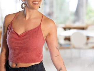 The top is knitted in the round from the bottom up.