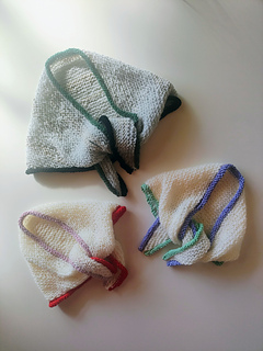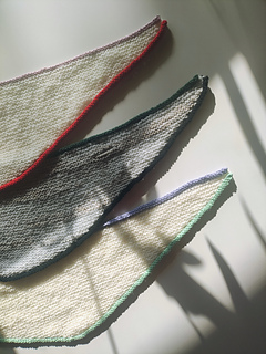 ちょっと面白い構造で編み進めるガーター編みのシンプルな三角ショールです. 変奏曲のように一つのテーマ(編み方)に少しずつバリエーションを作る事で直角三角形に近いクラシックな三角ショールから極端に細長い三角ショールまで5種類の三角形が編めるようになっています. オプションでふちをフリルにする方法, 縞模様へのアレンジ, 三角の端を交差させるための穴を開ける方法を載せました.