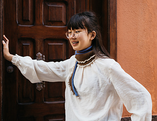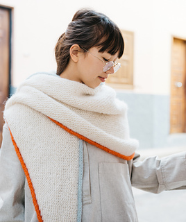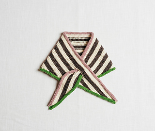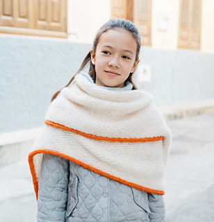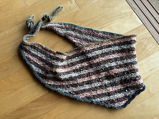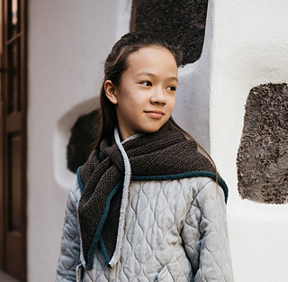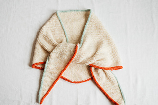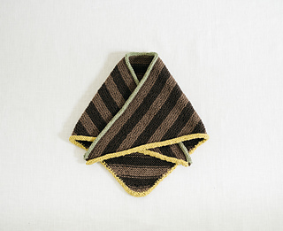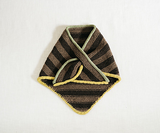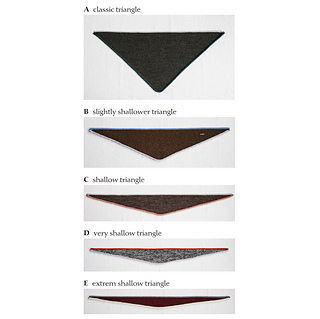 A simple triangle shawl in garter stitch yet with a particular construction. Just like in variations on the same themes, small differences in the same construction produce five types of triangles, from a classical right-angled triangle to an extremely shallow one. The pattern also provides instructions for a ruffled border, striped color work, as well as those for making a hole to cross the tips.