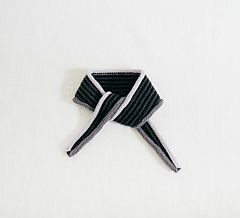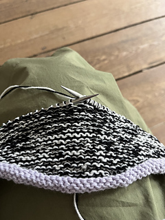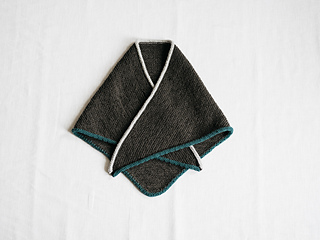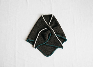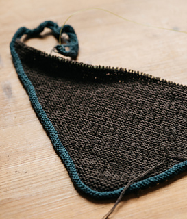 編み方はとても簡単です. 最初にメリヤス編みでふち取りを編み, ふちのラインに適度な伸縮性を与えるために減らし目をします. 下の角からガーター編みをスタートして等間隔で引き返し編みをしながら編み進めていきます. 増し目は一度も使いません. 最後に上のふちをメリヤス編みで編んだら完成です.