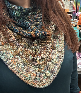 The Vientos Cowl pattern showcases three colors of NEW Vientos bulky hand dyed yarn from Malabrigo. The colors were selected to transition from light to dark.