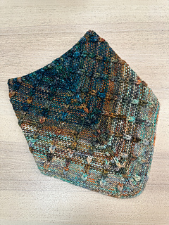 You’ll start at the bottom edge and decrease + fade your way to the top, creating a triangular shape. Once completed, you’ll sew the top edge together to finish with a bandana shape.
