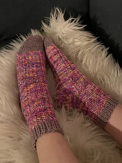 The Voyager Socks is a simple DK weight sock pattern using the broken rib stitch for some fun texture. The socks are knit cuff down, with a heel flap and gusset, and an anatomical toe. It is knit in 1x1 ribbing for the cuff, and then broken rib stitch for the main sock, with stockinette on the bottom of the foot and for the toes. The cuff and toes are worked in a contrast colour.