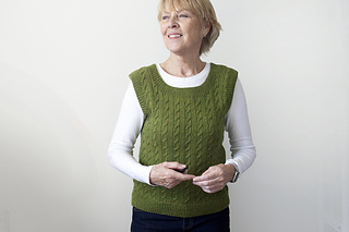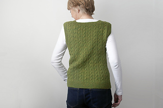 Continuing my foray into cables of late, welcome Walking On Sunshine, a vest this time, worsted weight with a deep scoop neckline. Cable stripes trimmed with simple ribbing are worked bottom-up and seamlessly in-the-round. It’s a meditative knit – perfect for peaceful knitting and all-season wear. Enjoy!