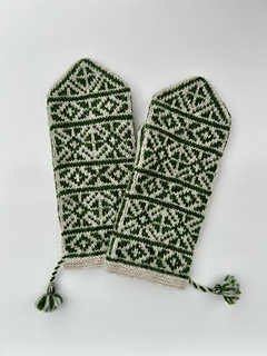 This year’s mittens are inspired by Swedish bandvantar — traditional mittens with a pattern reminiscent of Sámi woven shoe bands.