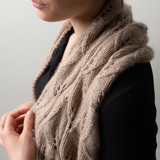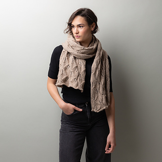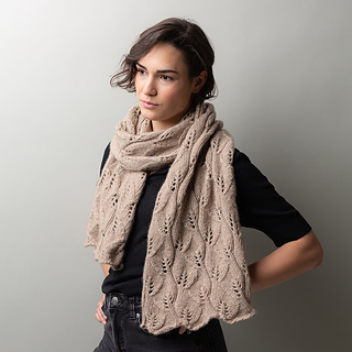 The WHIRLING LEAVES scarf is worked flat in an elegant leaf