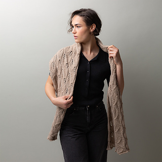 Rückreihen in einem edlen Blattmuster gestrickt. Die Blattform wird mit Umschlägen, Zu- und Abnahmen kreiert. Zu beiden Seiten des Musters wird ein Kettrand gearbeitet.