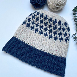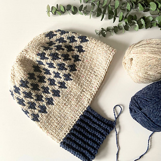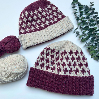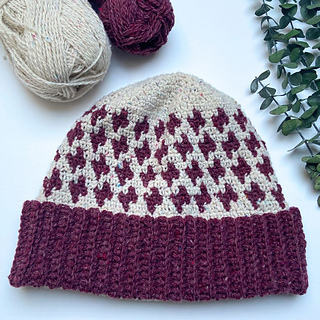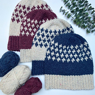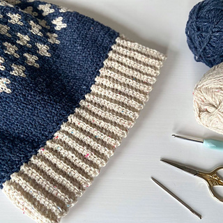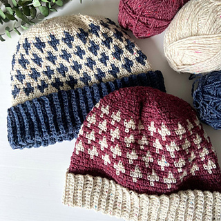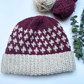 The pattern includes full written instructions, a colourwork chart, comprehensive pattern notes and tips for making the beanie.