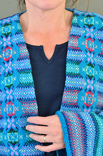 Wild Bight is a top-down, modified drop-shoulder cardigan with a nifty construction at the cast on and a built-in facing at the open Fronts. The body is worked top down and in the round with steeks at each armhole and at the centre Front. The sleeves are picked up and worked in the round.