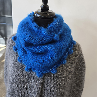The cowl is knit in the round with bobble rounds and the beginning and end of the cowl.