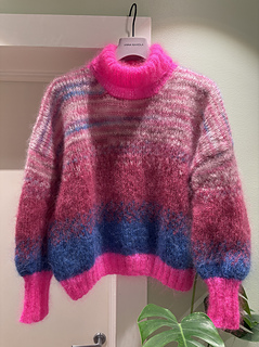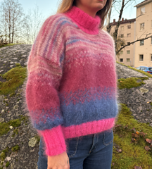 Denne genseren er en fluffy klem som kan strikkes i uendelig antall fargekombinasjoner.