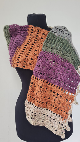 Scarf measurements: 24 cm / 9.44” in width / 1.60 m /1.74 yds in length