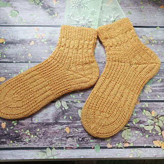 The socks are worked top down, starting at the cuff, continuing with the leg, shadow wrap heel, foot and finishing with the grafted toe. The length of the leg and the foot are customizable and instructions are given in the pattern.