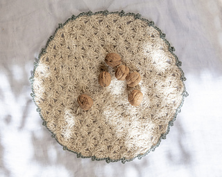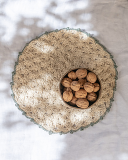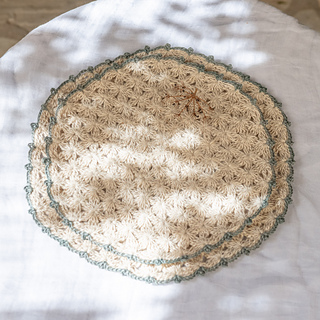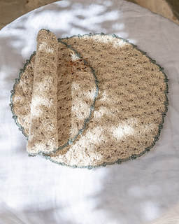 The ‘Yasemi Palcemat’ crochet pattern will guide you through creating a beautiful placemat made with jute yarn.