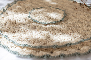 You will need jute yarn 1mm (100gr ± 180m/197yds): 150gr (± 270m/296yds) MC and 20gr (± 35m/40yds) CC is enough to make the largest placemat.