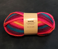 Nice yarn, self striping, clean colors. Washes and wears well. Band recommends 4.5 to 5mm needles, 4 worked well, too.