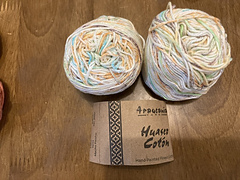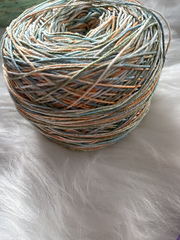 The hand-painted colors of this soft cotton yarn will put you in mind of spring flowers. This light fingering weight yarn is excellent for warm weather garments and accessories.