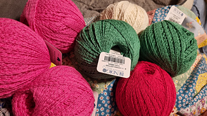 It is slightly stretchy, with some spring due to the Lycra. Finished pieces in this yarn are more likely to retain their intended shape, particularly when compared to 100% cotton yarn items, due to this Lycra element.