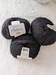 Brushed alpaca creates a soft halo while the cotton, wool and nylon core seem to illuminate flecks of color in our new yarn Mistico. The fabric created with this yarn is soft and light but retains a good stitch definition.