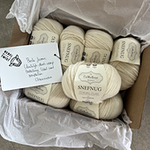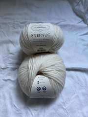 Snefnug (“snowflake”) is a super soft, light, airy but thick yarn entirely made from natural materials in a luscious blend of 55% baby alpaca, 10% extra fine merino wool, and 35% cotton.