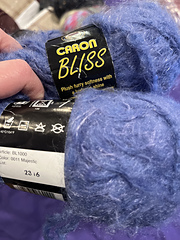 From the Caron Website: The rich color palette, the stitching ease, and most of all, the incredibly soft hand, combine to make Bliss a winner. Bliss is constructed of two fine ends of acrylic boucle combined with a silky-soft, solid-color nylon eyelash yarn.