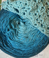 The characteristic color changes develop gradually over the running length of the 1000 meters (1093 yd). The colors only change one strand at a time, which makes for long, gradual color changes. It creates the most beautiful plays of color that are now accompanied by a bit of bling from the glitter thread.