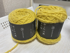 タム糸とはループヤーンを針でひっかいて毛羽だたせた糸。モヘヤのようなふんわりとしたやさしい肌ざわりと、ソフトな軽さが特徴です。 何本かのタム糸を撚りあわせ、毛羽がからまることで、まるで手つむぎの糸のような自然な風合いとなりました。