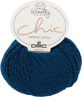 Woolly Chic, is a glamour version of the DMC Woolly yarn. A metallic thread was added to merino wool, bringing a touch of refinement and scintillating look.