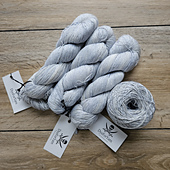 A strong yet soft almost high twist fingering silk with a brilliant pearly luster. It is hand dyed in elegant and vibrant colors perfect for shawls and classy garments.