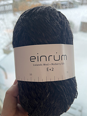 EINRÚM E is Einband from Ístex (100% Icelandic wool, lace weight) plied with 2 threads (E+2) of Thai silk.