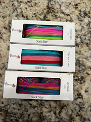 Sold in a box containing enough yarn to make an adult size pair of sock. Already wound and separated into two equal parts, starting at the same place in the color pattern, to let you knit two identical socks (or mittens, or legwarmers) without worries!