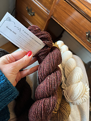 6 of the shades are created with un-dyed fibers. These hues are the result of the glorious color provided by the alpaca fiber: Cappuccino, Chai, Cream, Cocoa, Dark Roast and Earl Grey.