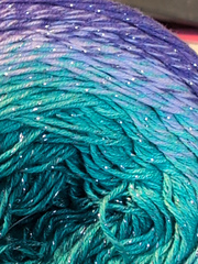 It’s a joy to work with Twister Glitter because you’ll be able to follow the gradual color changes. You get a full kilometer of yarn in one skein (1093 yd), so there’s plenty of yarn to make a shawl or scarf with, and the colors will really get to shine.