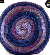 Hobbii Universe is a really nice yarn, with a long, elegant color gradient. Here a thin glittery thread is spun in, that can add a little sprinkle of glamour to any project. The glittery thread is so fine that it can hardly be felt - however it can be seen! It matches the yarn’s colors so you’ll get a really cool bling-effect, without being too ballroom.