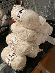 100% alpaca fleece. May also have been sold in 40 gram skeins and on larger cones. 38 yds. per 10 grams.