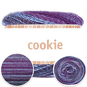 Cookie är ett lekfullt syntetgarn som passar perfekt till stickade och virkade plagg och accessoarer. En ”kaka” räcker både till en hel sjal eller poncho, och de härliga printfärgerna skapar en vacker effekt – utan att du behöver byta nystan en enda gång!