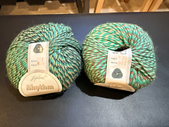 100% wool. Two types of yarn: Rhythm and Rhythm Superwash. Rhythm yarn colors start with Mxx, Rhythm Superwash color starts with RSxx.