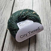 “This yarn begins with alpaca and Merino fibers dyed two different colors and then blended together to make a subtly rich, lustrous heather. We chose neutral colored donegal tweed neps to incorporate into the 2-ply yarn. The high ratio of neps gives City Tweed a traditional appeal. The use of Merino and alpaca makes it soft and warm. The DK weight is gorgeous in two-color knitting.”