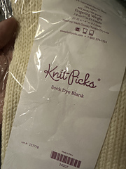 This is Knit Pick’s undyed, natural Stroll sock yarn knit, double-stranded, into a flat Sock Blank. You can dye the blank, then knit two socks straight from the blank.