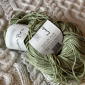 Reines Leinengarn aus 80 Prozent recycelten Fasern 80% Recyceltes Leinen (Viskose), 20% Leinen.