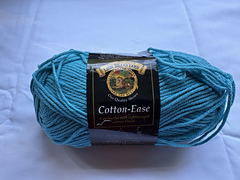 From LionBrand: “Cotton-Ease is a versatile, soft cotton blend worsted weight yarn. Combining the absorbency of cotton with the lightweight of acrylic, it is ideal for making year-round garments and accessories for the entire family.”