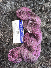 Susurro is 50% Mulberry silk, 25% Merino, and 25% linen, wound as a single ply into a sport weight.