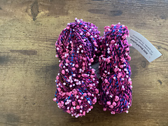 Make your project pop with Chakra--our gorgeous, hand-tied beaded yarn. Our beautiful recycled viscose is plied with a strand of our springy Capelli, a complementary strand of cotton and a strand of individually hand-tied beads and stones. The Capelli gives the yarn stretch, the cotton provides softness and body, but the beads make this yarn a stunner.