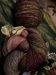 Estrellita is a fun choice for glam socks and shawls, with a flash of sparkle running throughout the skein! The Lurex is a silver-colored ply carried alongside the superwash Merino.