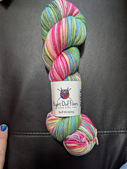 Barn Owl Sock is a new base to Night Owl Fibers. It is a lovely sock weight yarn that is plump and soft. Barn Owl is what I will be using for my Self-Striping yarns. It takes dyes beautifully.