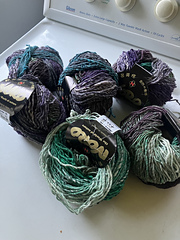 40% Wool, 30% Cashmere, 30% Silk with approx 137 yards per 50g that knits to 5.5 sts per inch on a US 6 needle.